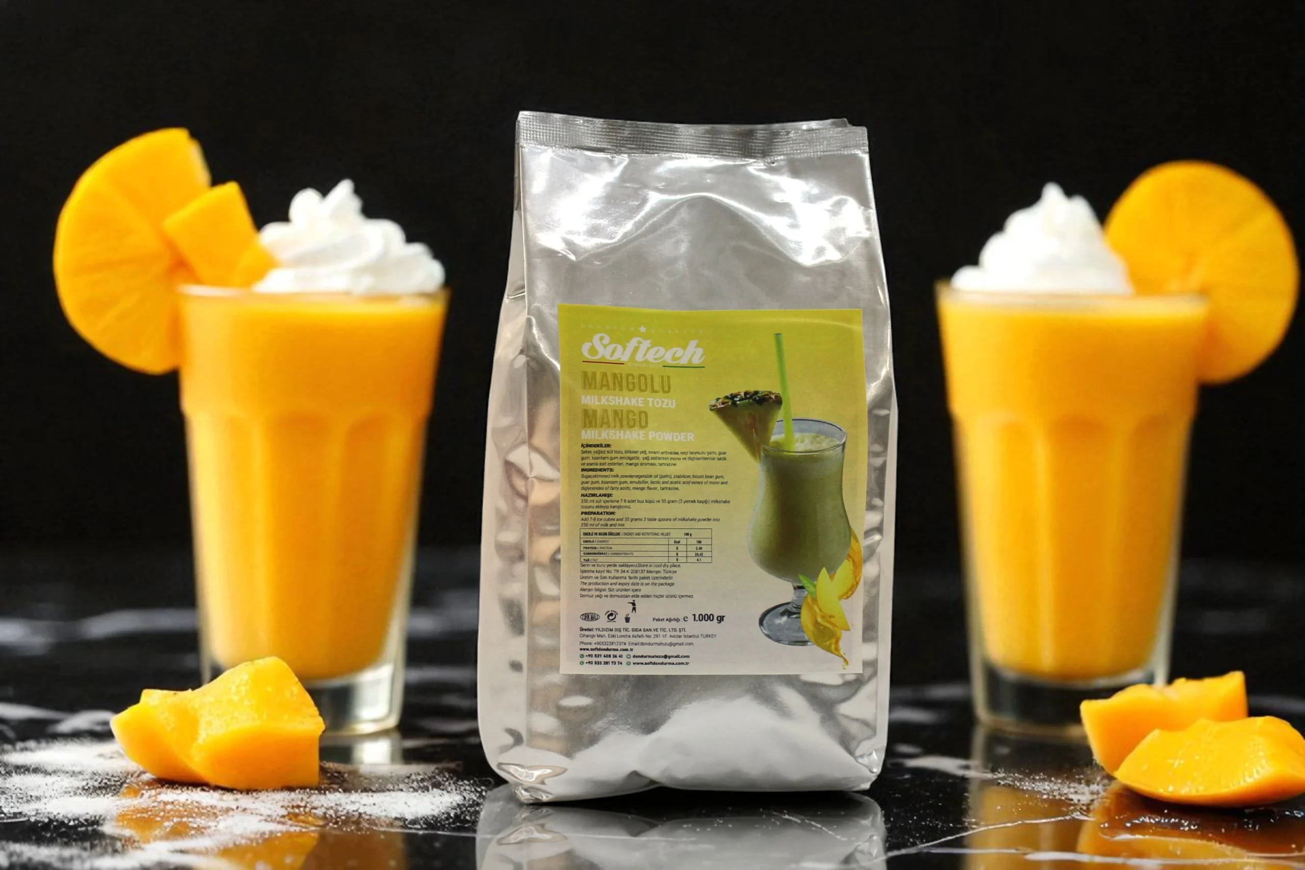 Softech Mangolu Milkshake Tozu, tropikal mango aromasıyla ferahlatıcı ve lezzetli milkshake’ler hazırlamanızı sağlar. %100 doğal pancar şekeri kullanılarak üretilmiş, yapay tatlandırıcı içermez. ISO 22000 ve Helal belgeli bu ürünle egzotik tatları evinize taşıyın.